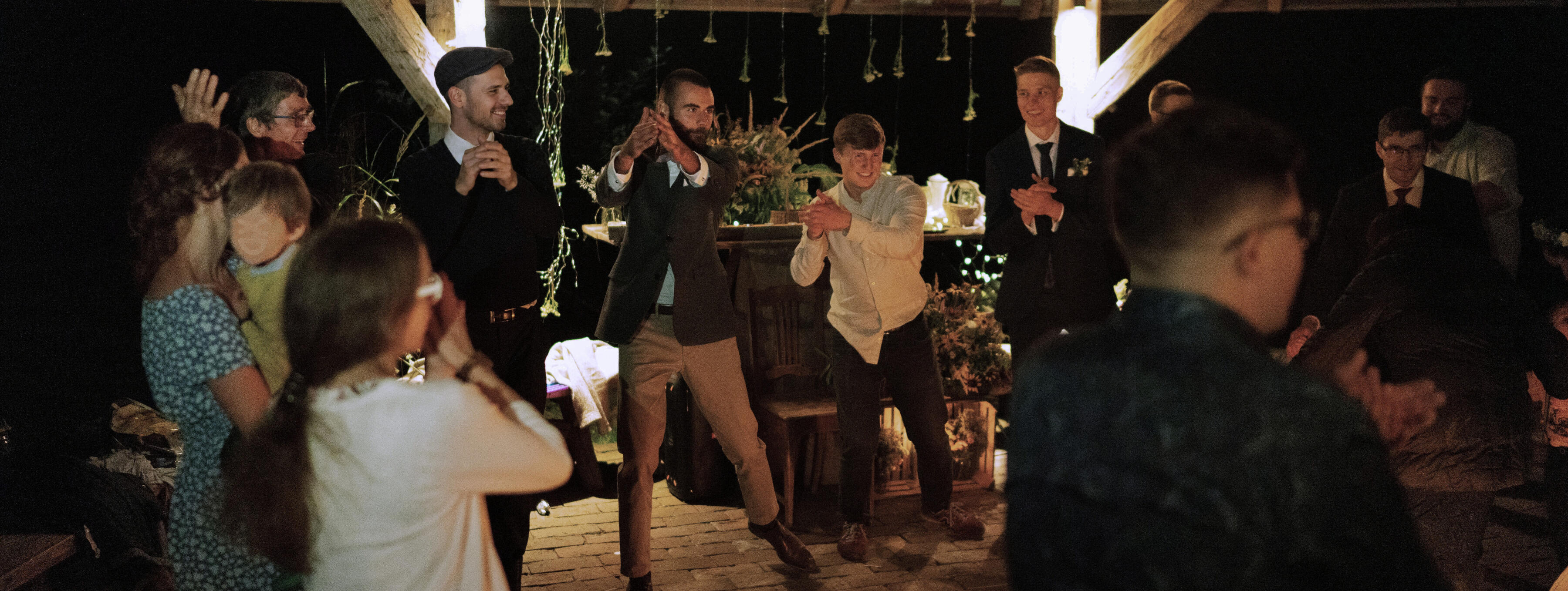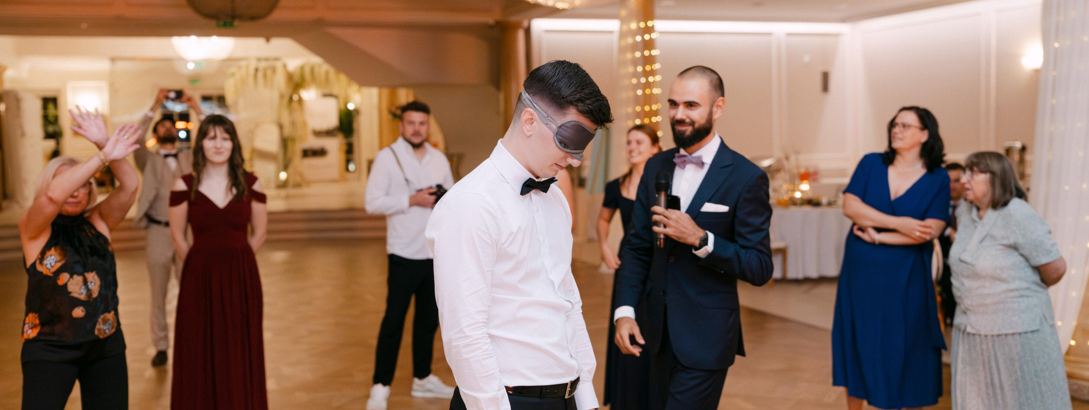 W pewnym momencie para znajomych zapytała mnie i mojego dobrego kolegę, czy nie chcielibyśmy być wodzirejami na ich weselu bez alkoholu. Wiadomo, chcieli zaoszczędzić, ale to nie było głupie, bo wiedzieli, że nieraz prowadziliśmy różnego rodzaju gry integracyjne, występowaliśmy publicznie, więc powinniśmy sobie poradzić. Wyszło chyba całkiem dobrze, bo był na tym weselu znajomy, który później poprosił nas o to samo, a na jego weselu byli inni znajomi, and the rest is history. Tym sposobem - najpierw z kolegą, a później już sam - organizowałem i prowadziłem jako wodzirej łącznie 6 wesel bez alkoholu (a i drugie tyle obserwowałem z perspektywy uczestnika [w tym jedno jako Pan Młody]).Mając więc już coś, co chyba można zacząć nazywać doświadczeniem w niszowej branży, oraz każdorazowo pozytywne reakcje par, z którymi współpracowałem (chyba, że kłamali), postanowiłem jesienią 2025r. pójść o krok dalej - zainwestować w odpowiedniej klasy sprzęt, dołożyć opcję oprawy muzycznej i zacząć zajmować się tym zawodowo. Będzie mi niezmiernie miło, jeśli pozwolicie mi zapewnić Wam spersonalizowane, przemyślane i dopieszczone doświadczenie na miarę Waszych oczekiwań! Zapraszam więc do sekcji FAQ, gdzie czeka już więcej konkretów, oraz do sekcji Oferta.