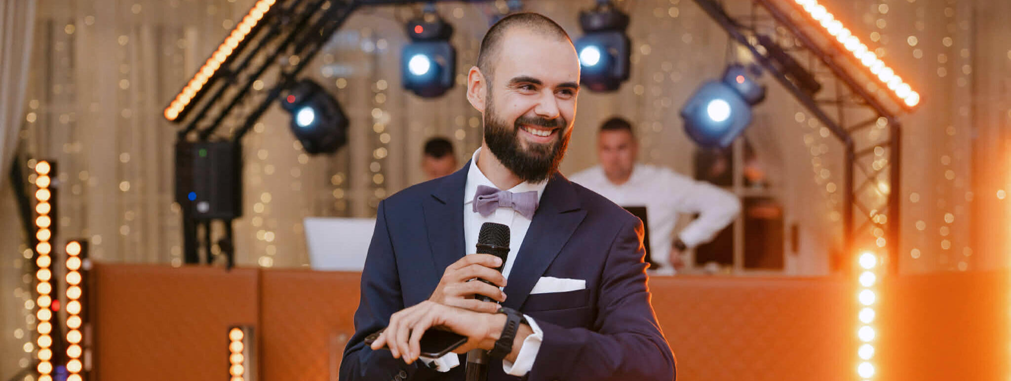 W pewnym momencie para znajomych zapytała mnie i mojego dobrego kolegę, czy nie chcielibyśmy być wodzirejami na ich weselu bez alkoholu. Wiadomo, chcieli zaoszczędzić, ale to nie było głupie, bo wiedzieli, że nieraz prowadziliśmy różnego rodzaju gry integracyjne, występowaliśmy publicznie, więc powinniśmy sobie poradzić. Wyszło chyba całkiem dobrze, bo był na tym weselu znajomy, który później poprosił nas o to samo, a na jego weselu byli inni znajomi, and the rest is history. Tym sposobem - najpierw z kolegą, a później już sam - organizowałem i prowadziłem jako wodzirej łącznie 6 wesel bez alkoholu (a i drugie tyle obserwowałem z perspektywy uczestnika [w tym jedno jako Pan Młody]).Mając więc już coś, co chyba można zacząć nazywać doświadczeniem w niszowej branży, oraz każdorazowo pozytywne reakcje par, z którymi współpracowałem (chyba, że kłamali), postanowiłem jesienią 2025r. pójść o krok dalej - zainwestować w odpowiedniej klasy sprzęt, dołożyć opcję oprawy muzycznej i zacząć zajmować się tym zawodowo. Będzie mi niezmiernie miło, jeśli pozwolicie mi zapewnić Wam spersonalizowane, przemyślane i dopieszczone doświadczenie na miarę Waszych oczekiwań! Zapraszam więc do sekcji FAQ, gdzie czeka już więcej konkretów, oraz do sekcji Oferta.